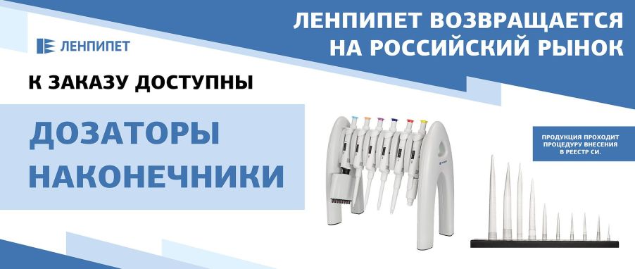 Ленпипет - ведущий поставщик лабораторных дозаторов, который зарекомендовал себя как надежный партнер в сфере научных и лабораторных исследований. Мы рады сообщить, что к заказу доступны дозаторы и наконечники различных объемов, соответствующие самым высоким стандартам качества. Продукция проходит процедуру внесения в Реестр СИ.
