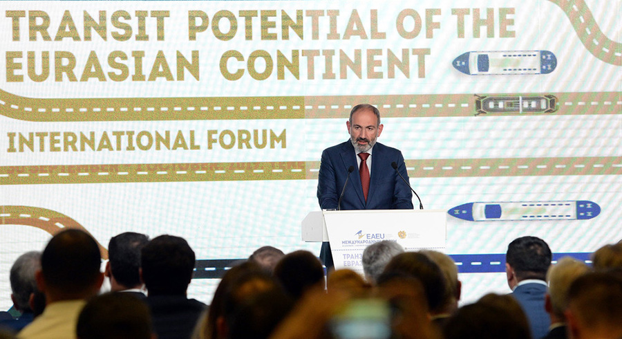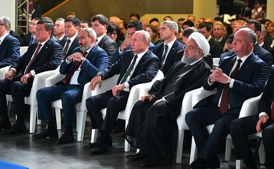 В заключительной сессии форума "Транзитный потенциал Евразийского континента" приняли участие премьер-министр Армении Никол Пашинян, президент России Владимир Путин, президент Киргизии Сооронбай Жээнбеков, президент Казахстана Касым-Жомарт Токаев, президент Ирана Хасан Роухани, президент Молдовы Игорь Додон, председатель Коллегии Евразийской экономической комиссии Тигран Саркисян.