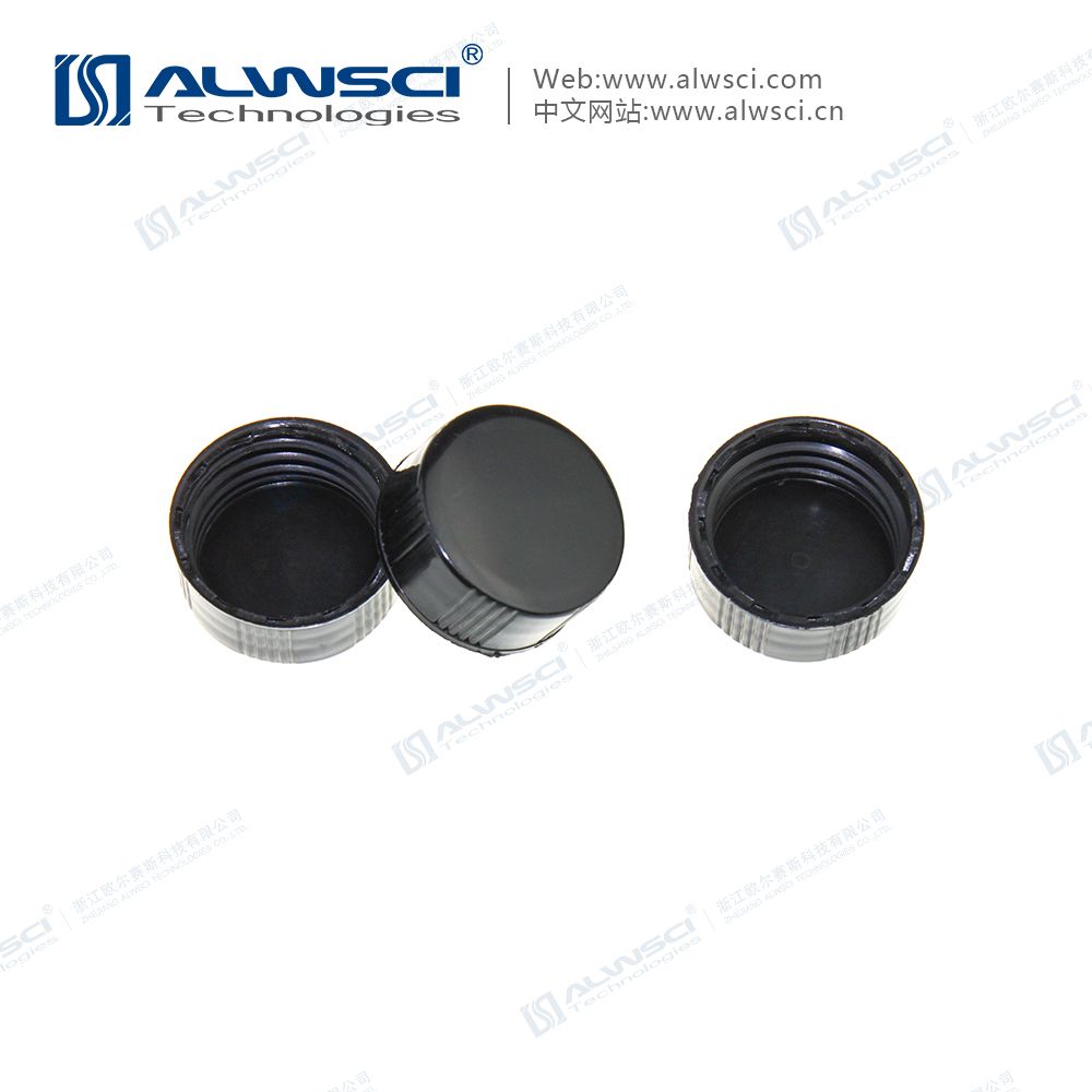 Крышки для виал, 15-425, черный полипропилен, закрытый верх, септа натуральный PTFE/белый силикон, толщина 1 мм, 100/pk, C0000191 ALWSCI