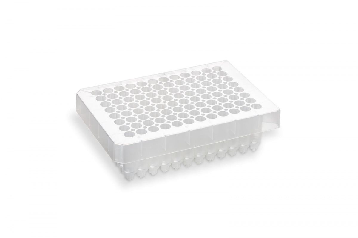 96-луночный фильтрационный полипропиленовый микропланшет с 4 слоями стекловолоконной (СВ) мембраны, размер пор 0,7 мкм, с полуюбкой, объем лунки 1 мл, длинные направляющие с турбиной, 25 шт/уп. Рекомендуемый планшет для сбора образца №201276-100.