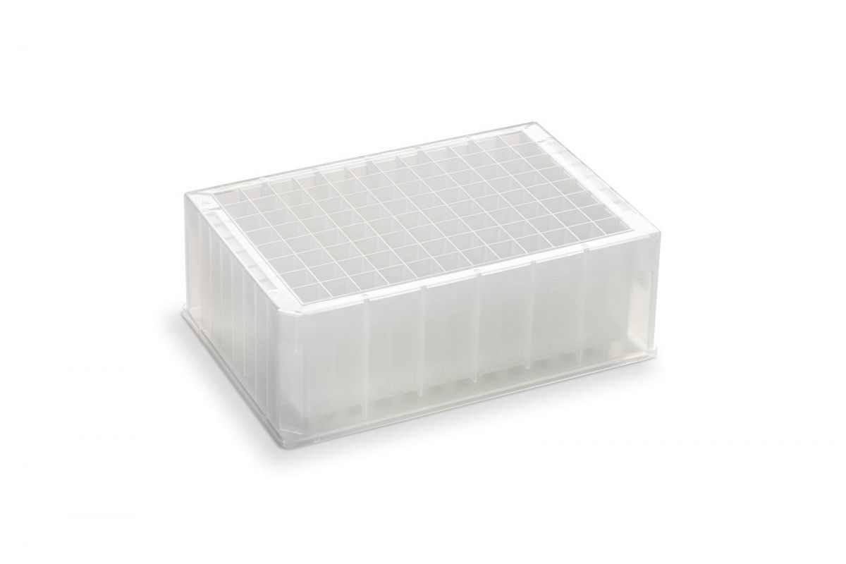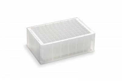 96-луночный фильтрационный полипропиленовый микропланшет с мембраной из сверхвысокомолекулярного полиэтилена (СВМПЭ), размер пор 25 мкм, объем лунки 2 мл, длинные направляющие (L), 25 шт/уп. Рекомендуемый планшет для сбора образца №201240-100.