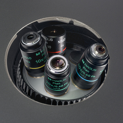 Объективы разного увеличения пропускают свет в разной степени, поэтому каждый раз при смене объектива требуется регулировка яркости света. Кроме того, яркость резко увеличивается при переключении с объектива большего увеличения на объектив меньшего увеличения. Резкое увеличение яркости вызывает утомление глаз. MAGUS Bio V360 оборудован интеллектуальным управлением яркости света. Микроскоп запоминает яркость для каждого объектива, которую выбрал пользователь, и автоматически устанавливает эту яркость при повороте револьвера. Интеллектуальное управление сокращает время на регулировку яркости. MAGUS Bio V360 повышает комфорт пользователя и экономит время даже когда работа требует частой смены увеличения.