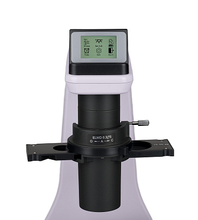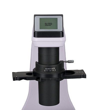 ЖК-экран на основании микроскопа отображает увеличение объектива, яркость источника света, режим работы («сон», «эко»).