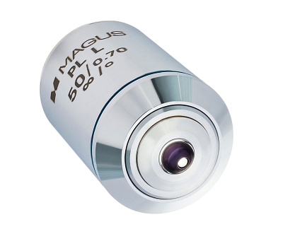 Объектив SFR50 кратностью 50х позволяет различить две разные точки на поверхности объекта на расстоянии 0,39 мкм. Подходит для тубуса с оптической длиной «бесконечность», парфокальная высота – 45 мм. Объектив наилучшим образом подходит для совмещения с окулярами кратностью от 7х до 15х. В комбинации с этими окулярами объектив даст полезное увеличение микроскопа в пределах от 350 до 700 крат.