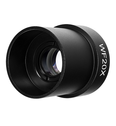 Окуляр для микроскопов MAGUS. У этой модели окуляра нет кольца диоптрийной подвижки, коррекцию можно выполнять с помощью кольца на тубусе микроскопа. Окуляр используется с объективами, имеющими увеличения 4, 10 и 20 крат. Посадочный диаметр окулярного тубуса – 30 мм. Предусмотрен вынос выходного зрачка 10 мм, чтобы было комфортно наблюдать в очках. Линзы окуляра изготовлены из оптического стекла, корпус из меди.