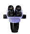 Объектив плавно изменяет увеличение в 6,7 раз без потери фокуса. Оптическая система формирует прямое (неперевернутое) объемное изображение. Дополнительные насадки на объектив изменяют диапазон увеличения, поле зрения и рабочее расстояние микроскопа.