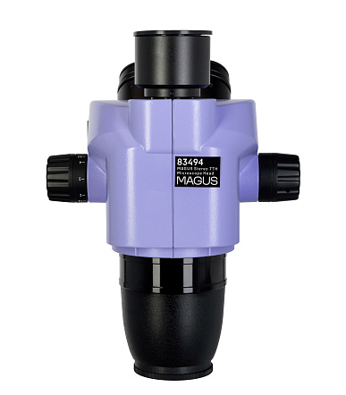 Объектив плавно изменяет увеличение в 6,7 раз без потери фокуса. Оптическая система формирует прямое (неперевернутое) объемное изображение. Дополнительные насадки на объектив изменяют диапазон увеличения, поле зрения и рабочее расстояние микроскопа.
