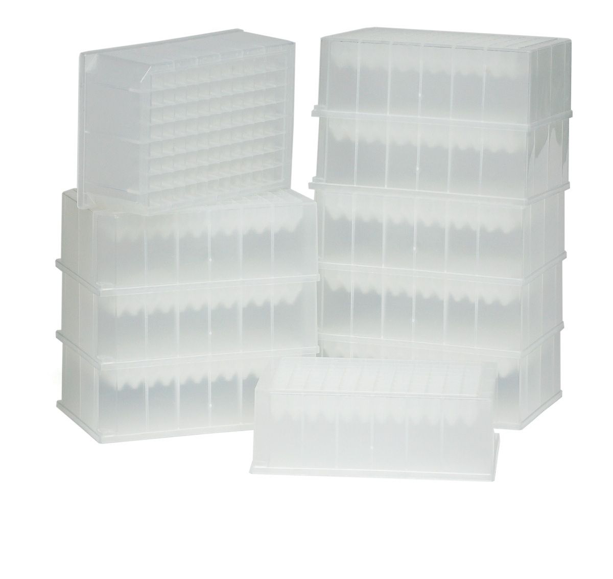 96-луночный планшет для сбора из полипропилена, квадратная лунка объемом 350 мкл, размеры (ШxВxД) 85,5 мм x 127,6 мм x 44,4 мм, коническое дно, нестерильный, 50 шт/уп.
