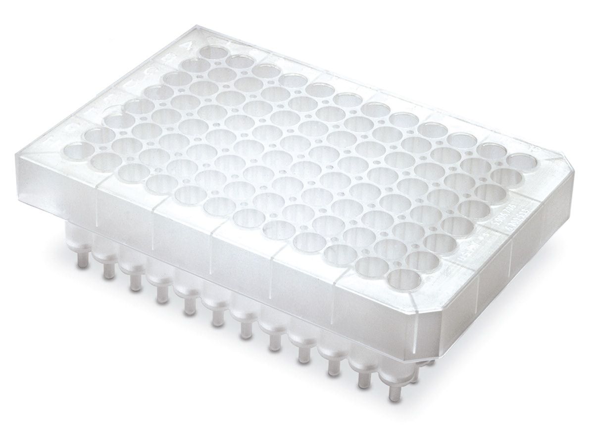 96-луночный планшет из полипропилена с полуюбкой, круглая лунка объемом 1 мл, сорбент Bond Elut C18 (неполярный механизм экстракции) массой 100 мг с размером частиц 40 мкм, полиэтиленовая фритта, нестерильный, 1 шт/уп.