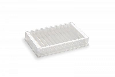 Резервуар из полипропилена, 12 колонок, объем колонки 7 мл, максимальный объем 84 мл, пирамидальная форма дна, высота 19 мм, облученный, 25 шт/уп. Планшеты стерилизованы гамма-излучением.