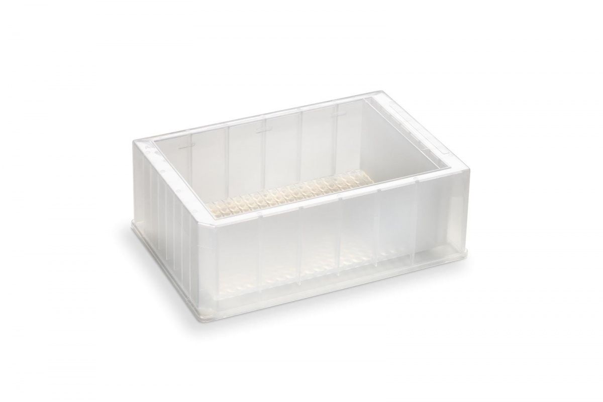 Резервуар из полипропилена с 3 уникалиными полостями, 2 контрольные лунки по 7 мл каждая, основная лунка 273 мл, максимальный объем 281 мл, форма дна из 384 пирамид, высота 44 мм, 25 шт/уп.