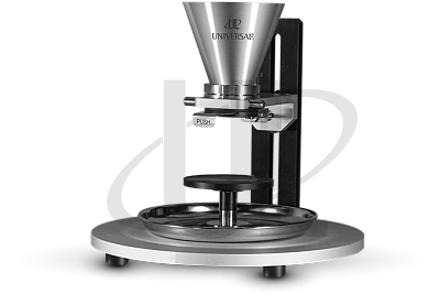 Тестер сыпучести порошка UL-PFT оборудован тремя соплами различного диаметра. Устройство включает простой пружиненный механизм, который закрывает отверстие форсунки и активирует тест при нажатии кнопки. Гладкая и зеркально отполированная внутренняя поверхность воронки обеспечивает стабильный свободный поток порошка. Тестер расхода порошка имеет надежное круглое основание, устойчивое к вибрациям, а также функцию регулировки высоты воронкообразного сопла. Тестер расхода порошка укомплектован приемным лотком для сбора избытка порошка. Воронка, насадка и лоток легко снимаются для удобства очистки.
