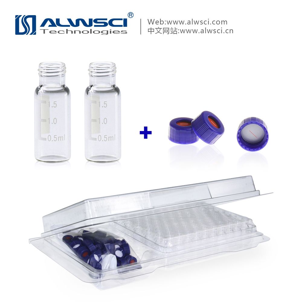 Виалы с крышками в наборе, 2 мл, прозрачное стекло, 12х32мм, 9-425 с отверстием сверху, красный PTFE/белый силикон, толщина 1 мм, предварительно прорезанная, с местом для надписи, UltraClean, 100/pk, C0001171 ALWSCI