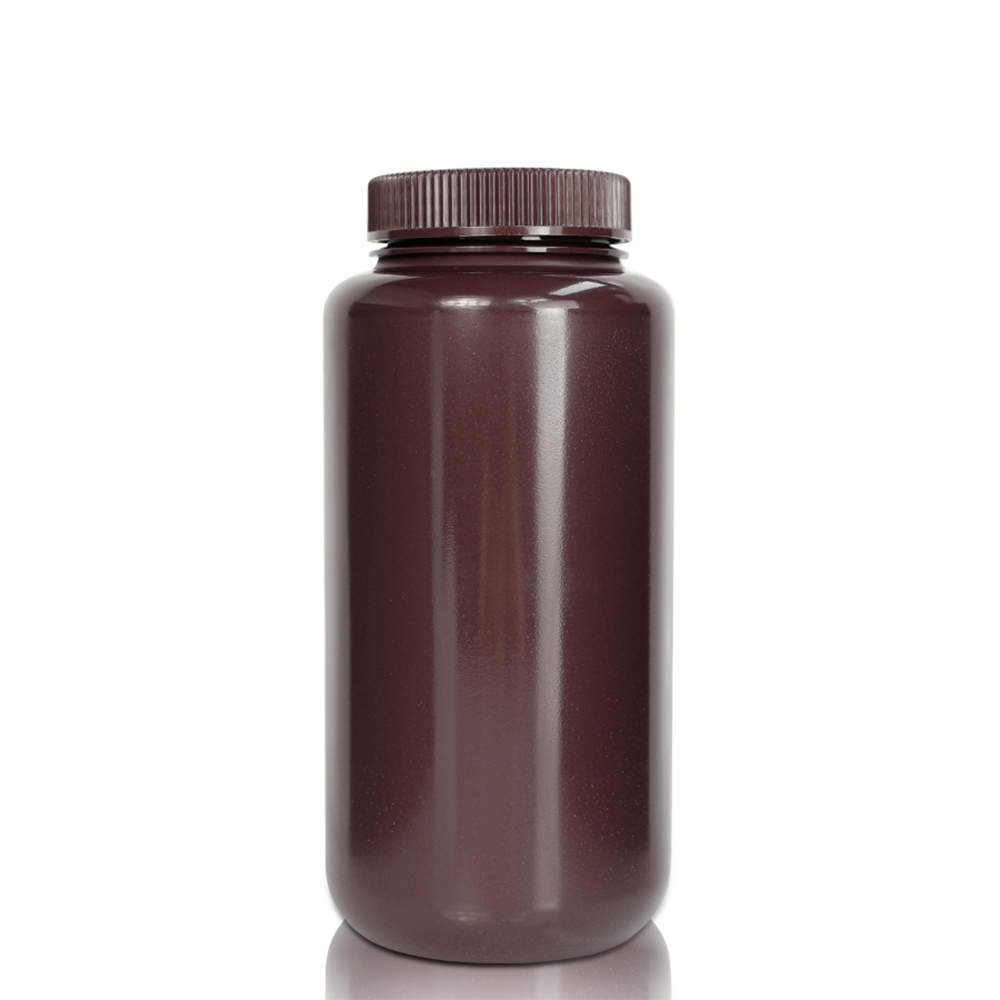 Бутылки HDPE, 1000 мл, винтовые, янтар, с крышками, широкое горло, нестерил, 50/уп, PK00301