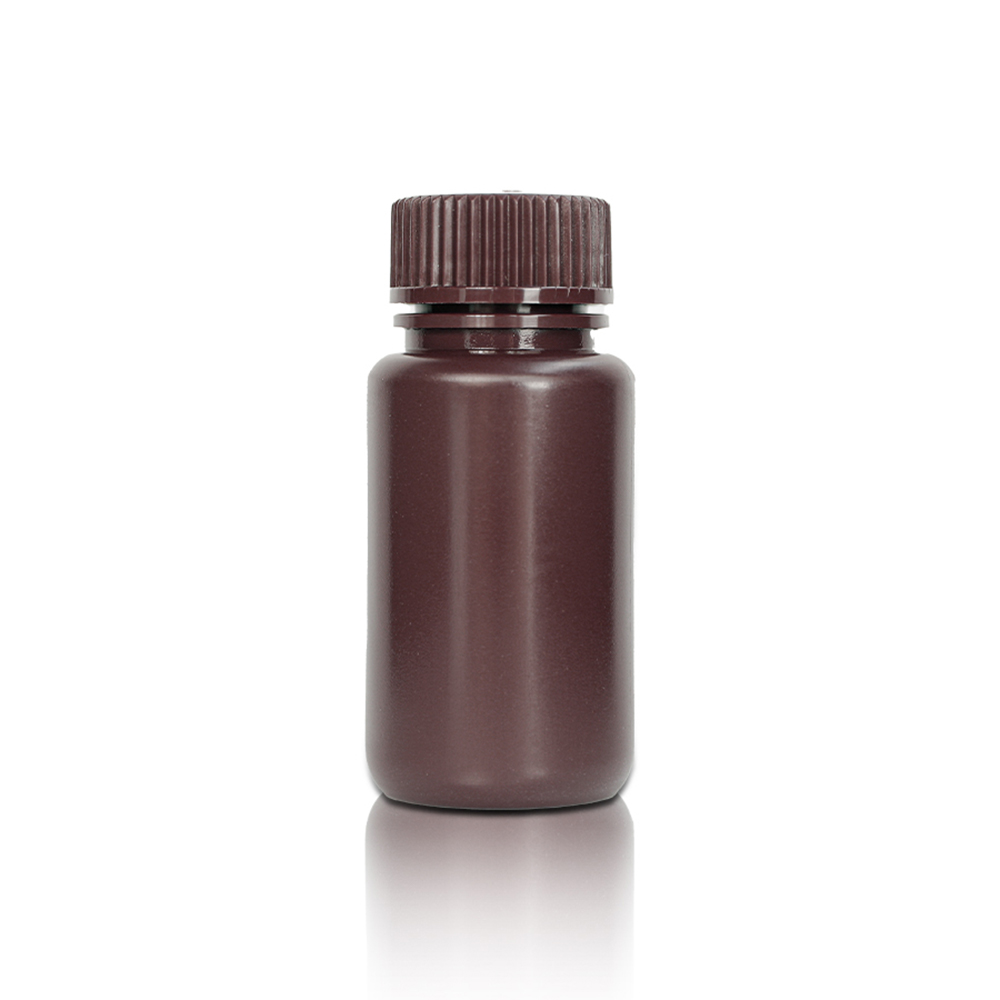 Бутылки HDPE, 60 мл, винтовые, янтар, с крышками, широкое горло, нестерил, 500/уп, PK00297