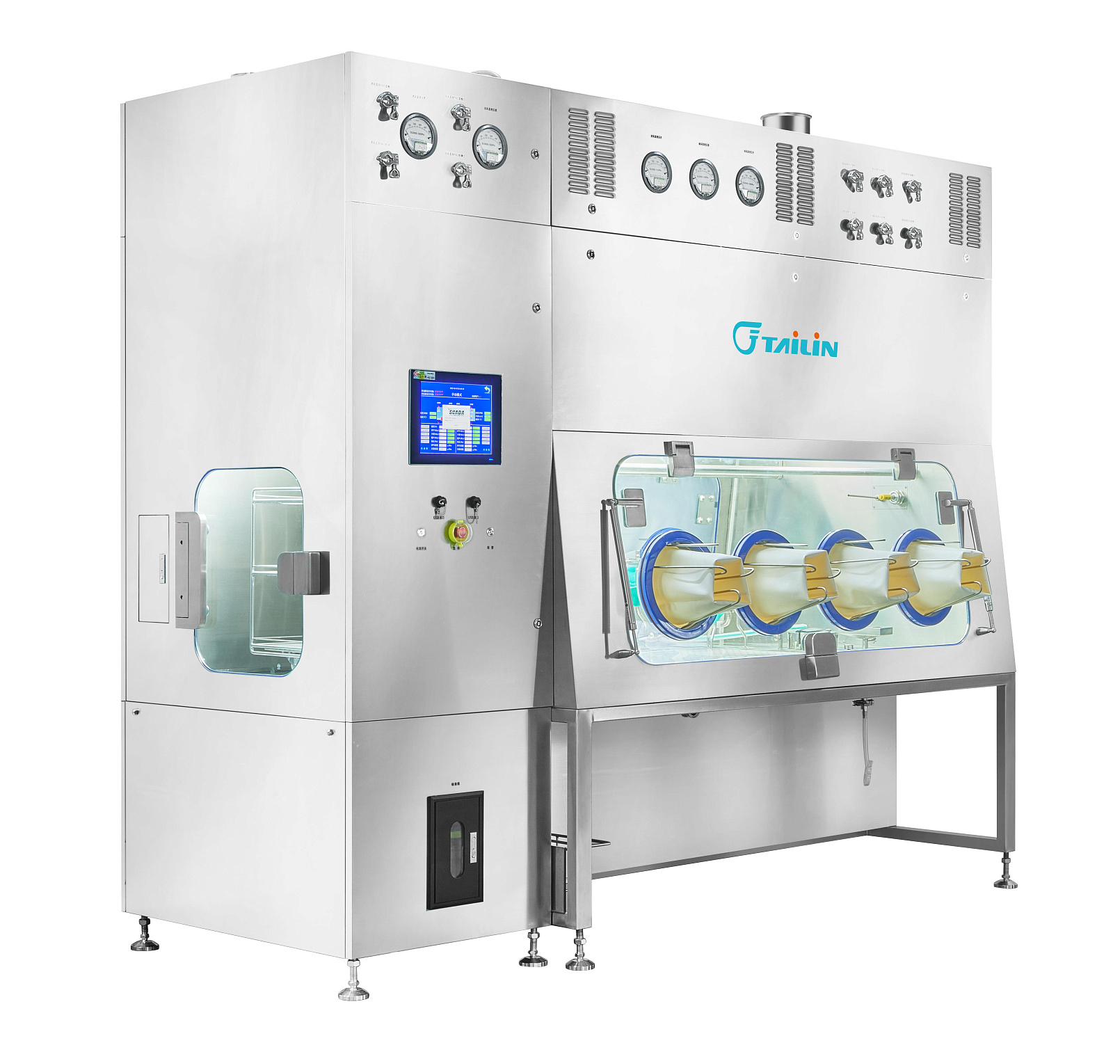 Изолятор HTY-1800G8 компании Tailin Bioengineering с ламинарным потоком воздуха предназначен для асептического отбора проб, взвешивания и упаковки сильнодействующих АФС и других токсичных агентов. Также данный изолятор может применяться для проведения тестов на стерильность.