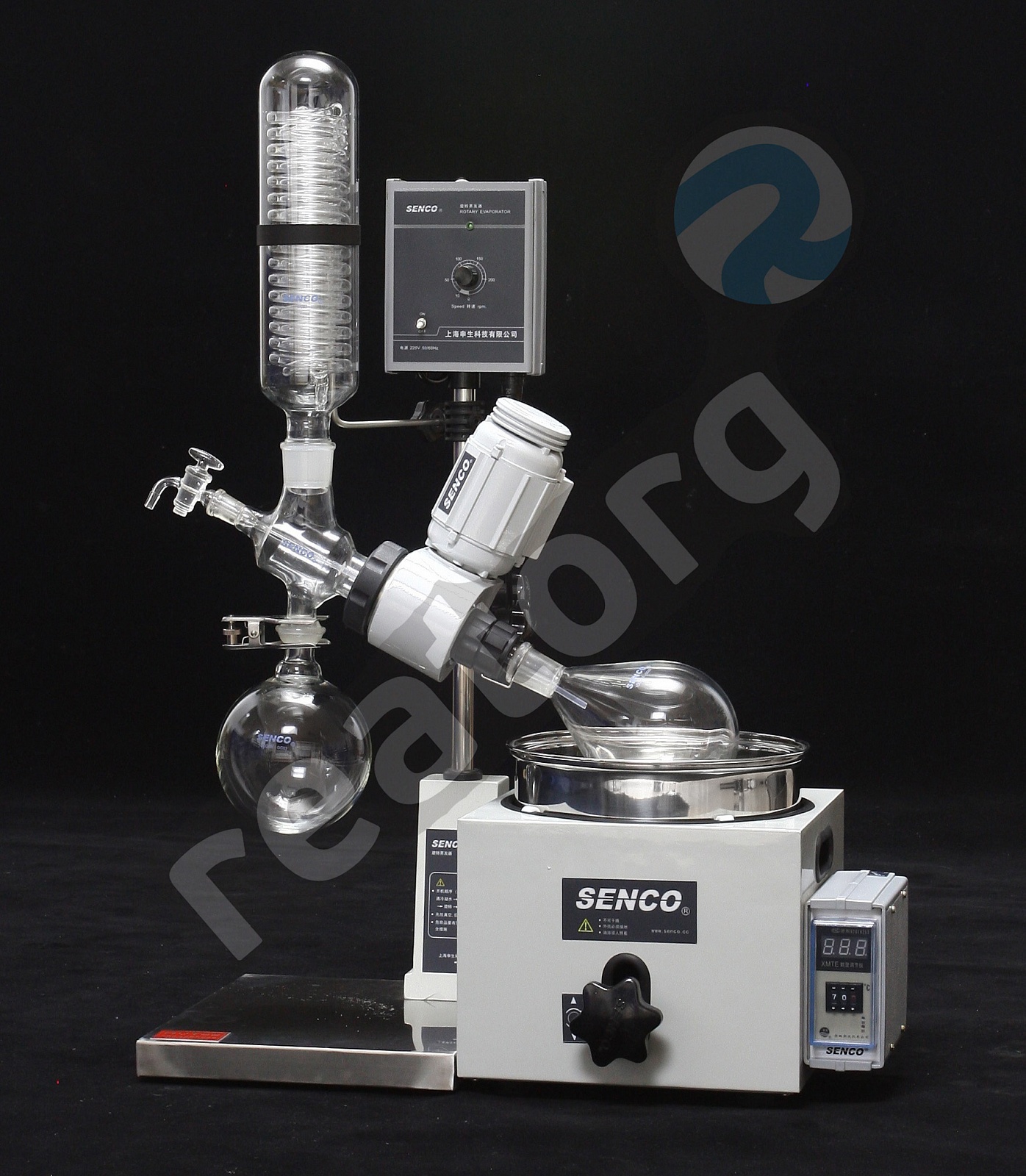 Ротационный испаритель на 1л или 2л с водяной баней мощностью 1,5кВт, регулируемый диапазон температур от 0°С до 99°С, приемная колба 1л. Оборудован вертикальным холодильником.