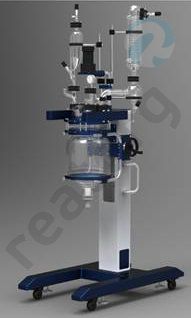 Стеклянный реактор с рубашкой, съемной крышкой, лифтом и теплообменником. Рабочий объем 10 литров.