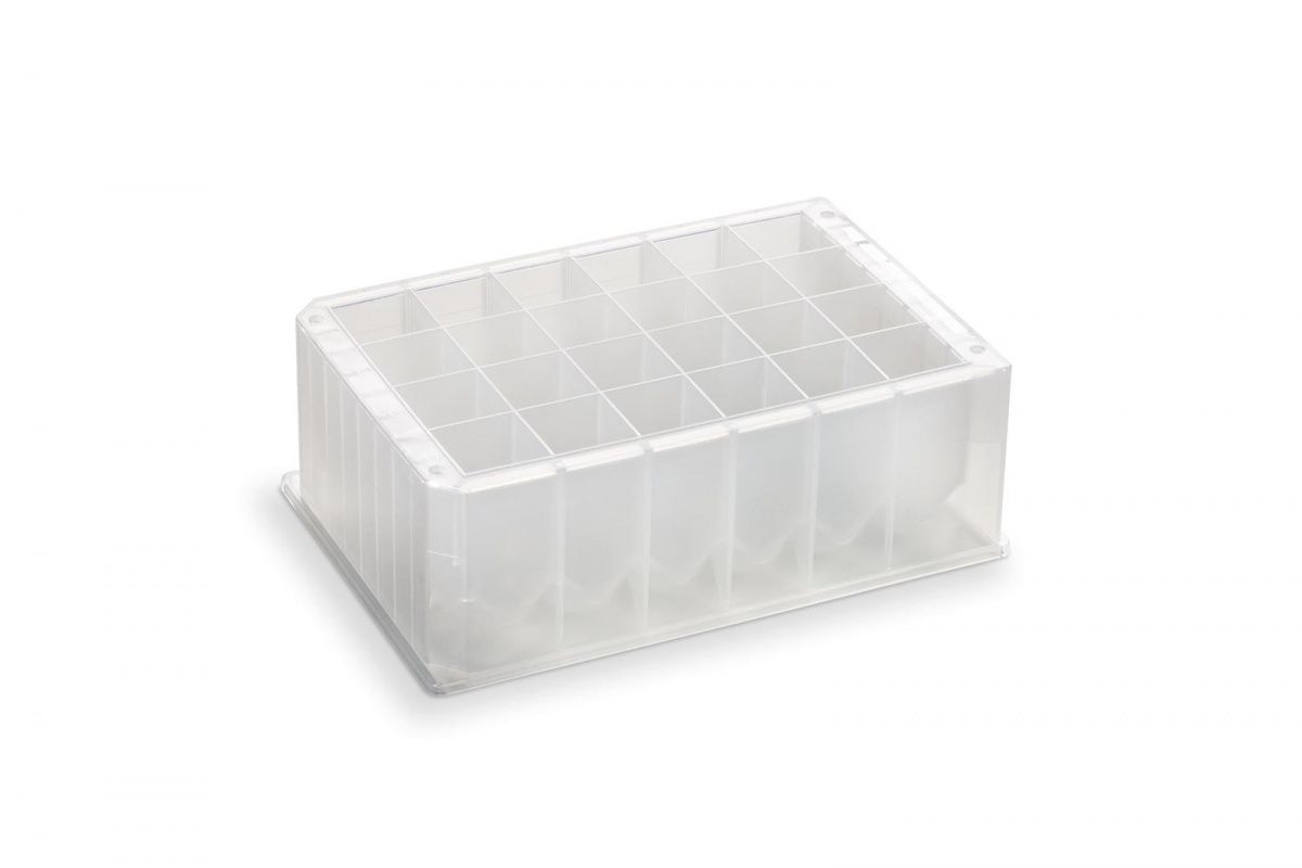 24-луночный микропланшет для хранения и анализа, из полипропилена, квадратная лунка объемом 10 мл, общий объем 240 мл, сферическое дно, высота 44,04 мм, глубина лунки 40,34 мм, 25 шт/уп. Предлагается крышка к данной планшете №201164-100.