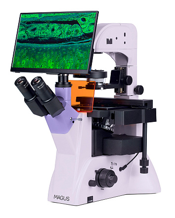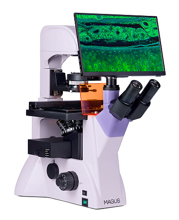 Микроскоп предназначен для исследования объектов при освещении отраженным светом по методу люминесценции и при освещении проходящим светом по методам светлого поля и фазового контраста.<br>На микроскопе исследуют осадки жидкостей, клеточные колонии, живые клетки, культуры тканей и другие объекты в питательной среде в лабораторной посуде высотой до 55 мм с толщиной дна 1,2 мм. В микроскопе используются специальные объективы для работы с такой посудой. Штатив осветителя отклоняется для работы с чашками Петри или колбами высотой до 165 мм.<br>Микроскоп используется для иммунохимической диагностики и хромосомного анализа, выявления скрытых бактериальных и вирусных инфекций.