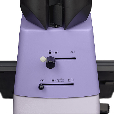 Цифровая камера устанавливается в вертикальный тубус визуальной насадки или в один из боковых портов визуализации на корпусе микроскопа. Световой поток на тринокулярной насадке переключается 100/0, 50/50 или 0/100. Деление света на правом фотопорте – 100/0 и 20/80; на левом – 100/0 и 0/100.