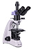 Микроскоп является тринокуляром, т. е. он имеет два окулярных тубуса для непосредственных наблюдений и отдельный канал визуализации, в который устанавливают цифровую камеру (нет в комплекте). Переключение светового потока – 100/0 или 0/100. Для удобства пользователя на левом тубусе размещено кольцо диоптрийной подвижки – с его помощью добиваются одинаково резкого изображения для обоих глаз пользователя. Кроме того, окулярные тубусы имеют удобный наклон для длительной работы – 30°.