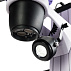 Бинокулярная визуальная насадка вращается вокруг своей оси и может быть установлена в любое положение. Цифровая камера (при ее наличии) монтируется в один из тубусов. Микроскоп комплектуется парой окуляров 10х/22 мм, на них есть механизм диоптрийной подстройки, а выходной зрачок находится на достаточной дистанции для работы в очках.