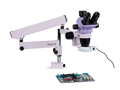 Готовое решение для пайки, ремонта и контроля качества готовых изделий создано на базе оптической головы серии MAGUS Stereo 7H и универсального штатива MAGUS UT1.