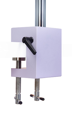 Универсальный штатив расширяет рабочую зону и предоставляет больше свободы в выборе положения оптической головы над рабочим местом. Штатив состоит из четырех секций и крепится к краю рабочего стола при помощи надежной струбцины, поэтому не занимает место на столе.
