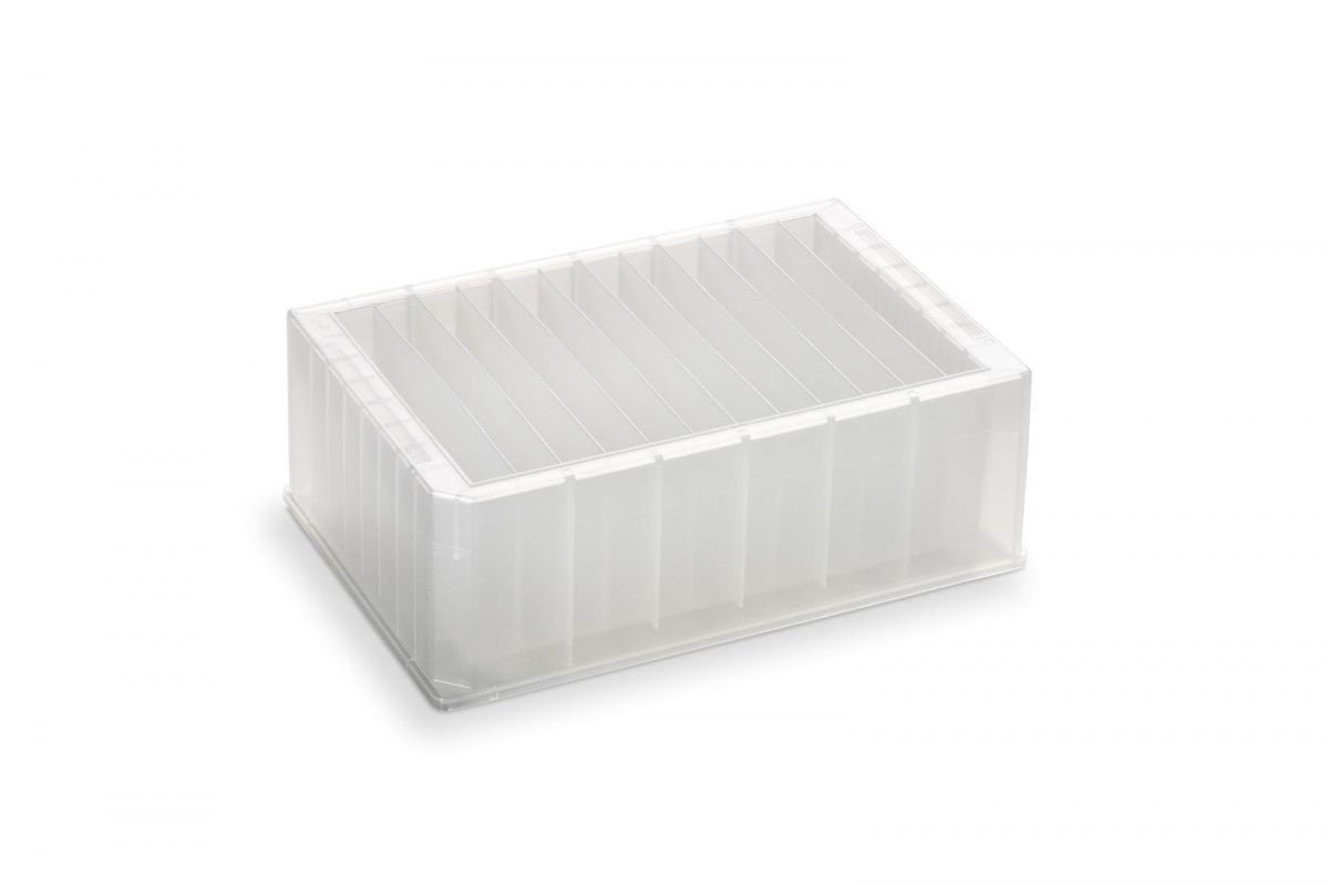 Резервуар из полипропилена, 12 колонкок, объем колонки 21 мл, максимальный объем 252 мл, пирамидальная форма дна, высота 44 мм, облученный, в индивидуальный, 25 шт/уп. Планшеты стерилизованы гамма-излучением.